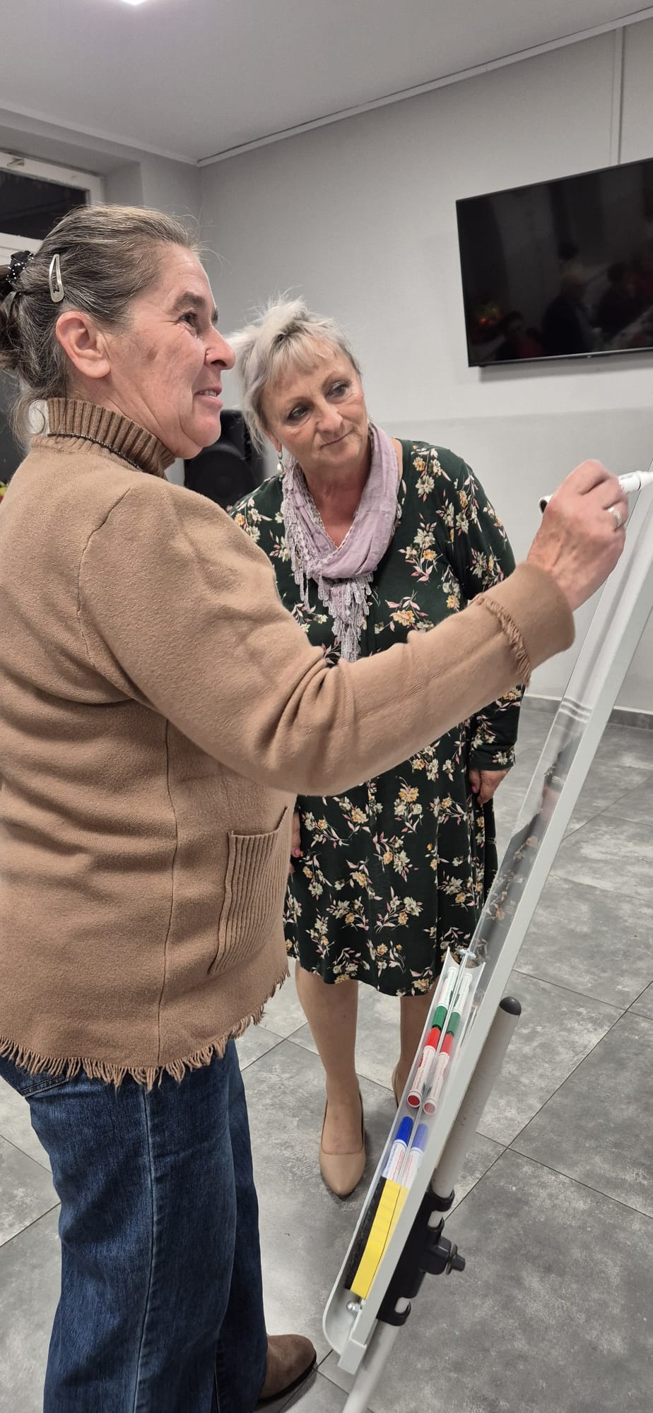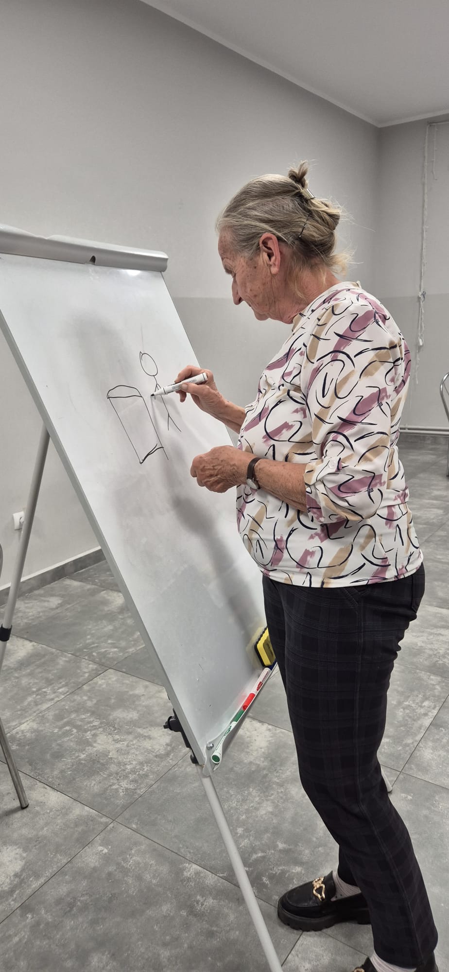 Po dawce wiedzy panie z KGW zaprosiły na rozrywkę z kalamburami. Seniorzy otrzymywali hasła bądź popularne przysłowia, które musieli zobrazować na tablicy. Odgadywanie rysunków wywoływało salwy śmiechu, a niektórzy wręcz ujawnili swe talenty artystyczne - i to nie tylko malarskie, ale i aktorskie, bo były i takie momenty, gdy w przekazaniu przysłów pomagali miejscowi… Robert De Niro i Nicole Kidman.