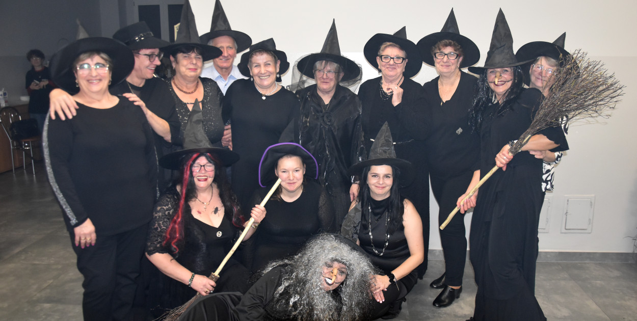 Do czasu zakończenia wspólnego posiłku wszystko było po staremu, ale w pewnej chwili w sali nagle zgasło światło i przy muzyce niczym z horroru wtargnęły na miotłach Ania, Beata i Kasia. Kruczoczarno odziane, w spiczastych kapeluszach, z rozwianymi włosami (wiadomo, miotła ma swoją prędkość!), wszystkie o nietuzinkowej urodzie podkreślonej długimi szponami, zębiskami jak u wampira, czy urodziwą brodawką na haczykowatym nosie.
