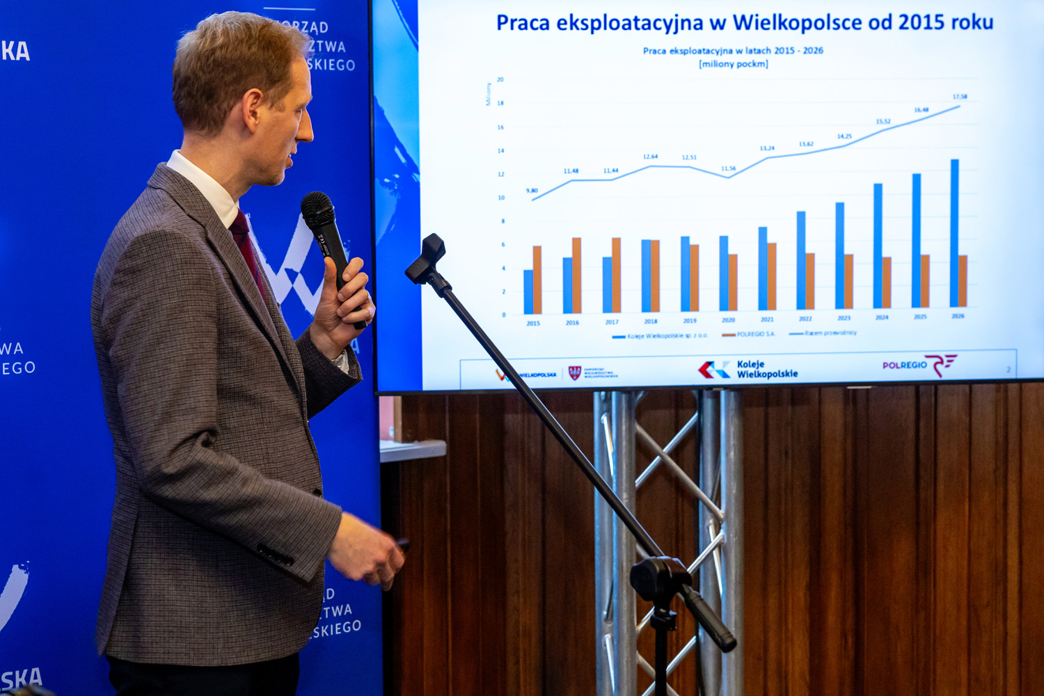 Wicemarszałek Wojciech Jankowiak podkreślił, że wchodzący w życie 14 grudnia nowy rozkład jazdy oznacza kolejny znaczący krok w rozwoju kolei regionalnej w Wielkopolsce. Samorząd sukcesywnie zwiększa liczbę zamawianych połączeń oraz zwiększają pracę eksploatacyjną, która w najbliższym rozkładzie jazdy wniesie 17,58 milionów pociągokilometrów.