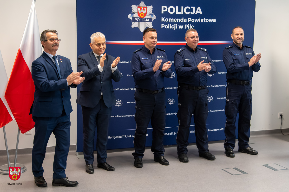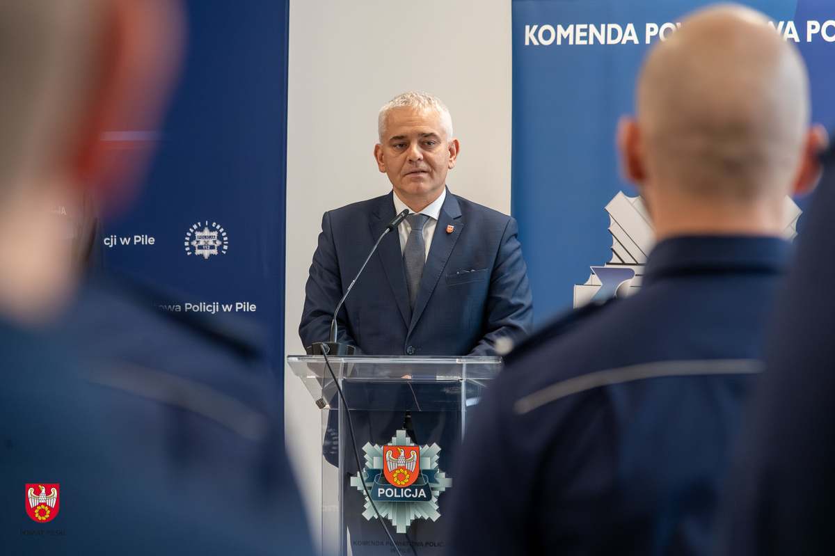 W uroczystości uczestniczyli starosta pilski Rafał Zdzierela, etatowy członek zarządu powiatu Kazimierz Sulima, komendant powiatowy policji mł. insp. Marcin Kowalski wraz ze swoimi zastępcami oraz kadrą kierowniczą.