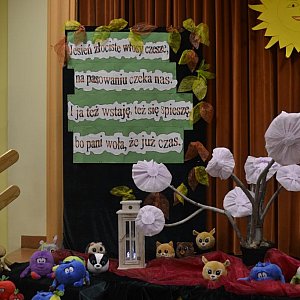 Uczniowie wzorowo zdali egzamin na ucznia klasy pierwszej odpowiadając na pytania z zakresu matematyki, języka polskiego, bezpieczeństwa i przyrody. Zaprezentowali również wesołe piosenki. Występy dzieci oceniało jury: dyrektor Danuta Buryta-Arndt i Edyta Lipkowska. Każda klasa otrzymała najwyższy możliwy wynik, czyli 10 punktów!