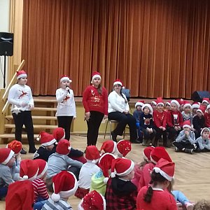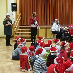 Pierwszymi gośćmi uroczystości, serdecznie powitanymi przez dzieci, byli dyrektor szkoły Danuta Buryta-Arndt, przewodnicząca Rady Rodziców Edyta Lipkowska oraz przedstawiciele Rady Rodziców: Mirosława Bieda i Sabina Katafiasz. Tradycją tej uroczystości stała się obecność dzieci z oddziału przedszkolnego, który mieści się w naszej szkole. Maluchy, pod kierunkiem pani Sandry, zaśpiewały piosenkę o Mikołaju. Ich występ nagrodzono gromkimi brawami. Następnie uczniowie klasy IIIb oraz IIIc, uczęszczający na kółko polonistyczne, zaprezentowali wiersze o tematyce świątecznej.