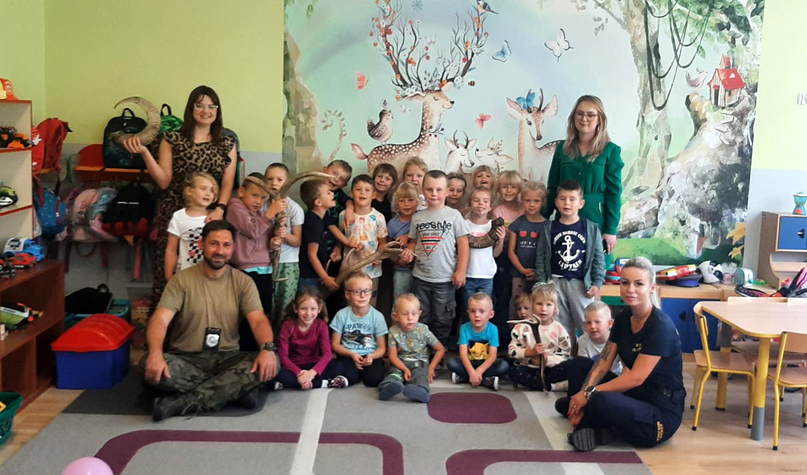Nie ma nic lepszego, niż edukacja dziecka poprzez zabawę. Innego dnia, także w Falmierowie, strażnicy miejscy połączyli siły z Państwową Strażą Łowiecką z Poznania, a konkretnie: z Posterunkiem PSŁ w Pile.