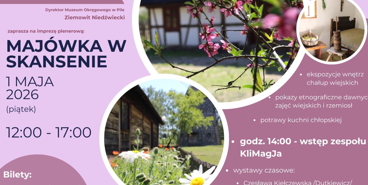 „Majówka w skansenie” odbędzie się w godzinach od 12.00 do 17.00.