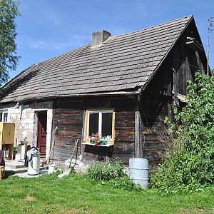 Zabudowania Mrotków były kiedyś większe: na podwórzu stał chlew i stodoła. Nawet dom był większy, póki od zachodniej strony nie zaatakowała go wichura. Gdy wiatr zerwał dach i obalił część drewnianej chaty, postawili od szczytu murowaną ścianę. Na całkowitą odbudowę nie było pieniędzy, więc teraz z jednej strony budynek jest o metr krótszy.