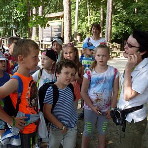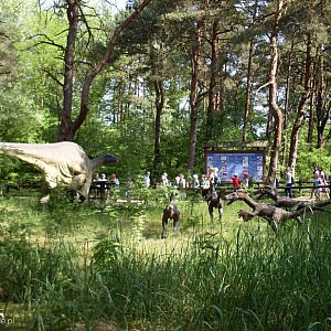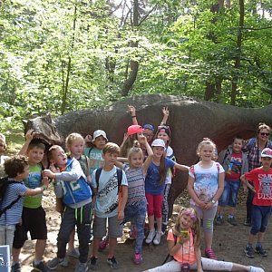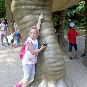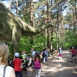 Po wyjściu z autokaru czekał na dzieci przewodnik, który przybliżył ciekawe historie z czasów gadów ery mezozoicznej. Zwiedzanie rozpoczęliśmy od triasu poprzez jurę i kredę. W Parku Jurajskim najbardziej cieszyły uczniów okazy o imponujących rozmiarach, takich jak: roślinożerne brontozaury, drapieżne tyranozaury, stegozaury, a nawet diplodoki i inne gady. Wielkie zainteresowanie wywoływały także praptaki archeopteryksy oraz pteranodony. Wśród pięknej leśnej scenerii można było podziwiać edaphosaurusy i pokaźne wiliamsonie.