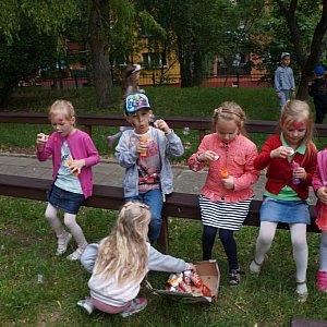 W tym wyjątkowym dniu nie zabrakło dla dzieci atrakcji, takich jak malowanie twarzy, słodkie upominki, malowanie kredą, zabawy ruchowe i inne. Każdy przedszkolak mógł w ten dzień poczuć się szczęśliwy, co sprawia radość i nam, dorosłym, bo, jak powiedział Janusz Korczak, "kiedy śmieje się dziecko, śmieje się cały świat".