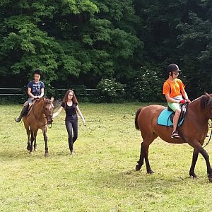 Następnie każdy mógł skorzystać z propozycji jazdy wierzchem. Nie wszystkim starczyło odwagi, ale wśród tych, którzy się zdecydowali, znaleźli się chętni do kontynuowania tej przygody w wakacje. Najbardziej aktywni piątoklasiści mieli możliwość przyjrzenia się z bliska pracom prowadzonym w gospodarstwie, inni mogli w tym czasie pograć na murawie w piłkę nożną, badmintona lub inne wybrane gry.