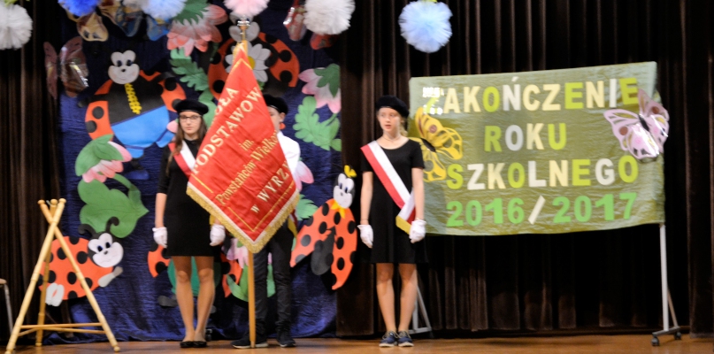 Uczniowie, dyrekcja, nauczyciele i rodzice zebrali się w sali widowiskowej przy Szkole Podstawowej im. Powstańców Wielkopolskich w Wyrzysku na uroczystości zakończenia roku szkolnego 2016/2017.