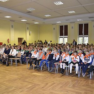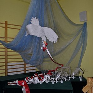 Pani dyrektor podziękowała za profesjonalizm w przygotowaniu programu i w jego prezentacji. Następnie odśpiewany został hymn szkolny. Uwagę zebranych na uroczystości zwróciła piękna dekoracja przygotowana przez panie Elżbietę Kwasek i Katarzynę Chyłę.