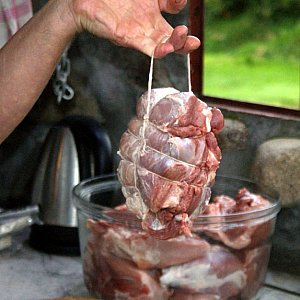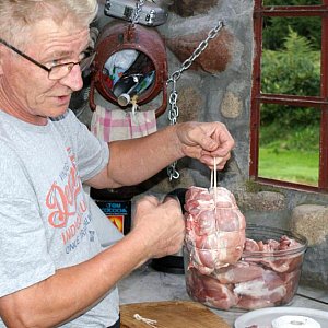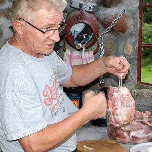 - W warsztacie kulinarnym zastosowaliśmy podział na mistrzów i uczniów. Na wtorkowym spotkaniu mistrzem był Roman Kajnat z Jaraczewa, który przekazał nam tajniki peklowania szynek i pokazał, jak zawinąć szynkę w szpagat wędliniarski. Każdy z uczestników dostał "pod opiekę" do domu zapeklowane mięso, które będzie wędzone na warsztatach 17 września.