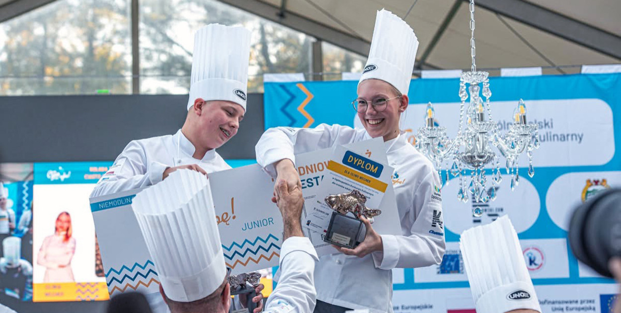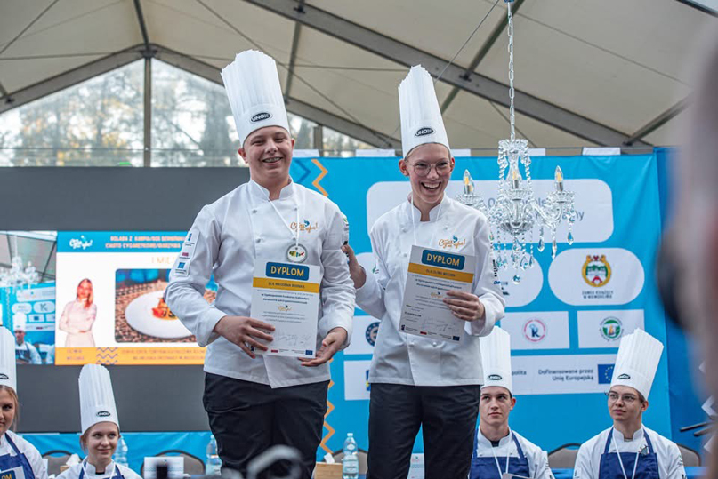 Udział w kulinarnej rywalizacji zakończył się wielkim sukcesem uczniów z Brzostowa: Oliwia Wegner i Nikodem Budnik przygotowali swe popisowe danie, które zachwyciło jurorów smakiem, kompozycją i perfekcyjnym podaniem. Roladzie z karpia z sosem berneńskim, purée dyniowo- imbirowym, kremem limonkowym, warzywami sous-vide i ciastem cygaretkowym i wykończeniem z oliwy pietruszkowo-miętowej przyznano pierwsze miejsce.