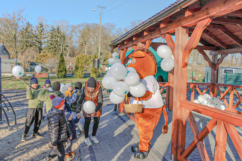 Niecodziennym i wyjątkowo radosnym akcentem wydarzenia była wizyta „Łobzików”, którzy przybyli specjalnie z lasu, aby wręczać dzieciom cukierki oraz balony z hasłem: