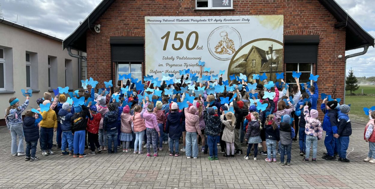 Nad wydarzeniem symbolicznie królowały niebieskie motyle - znak akceptacji, delikatności i zrozumienia, obecny zarówno w dekoracjach, jak i w pracach przygotowanych przez uczniów.