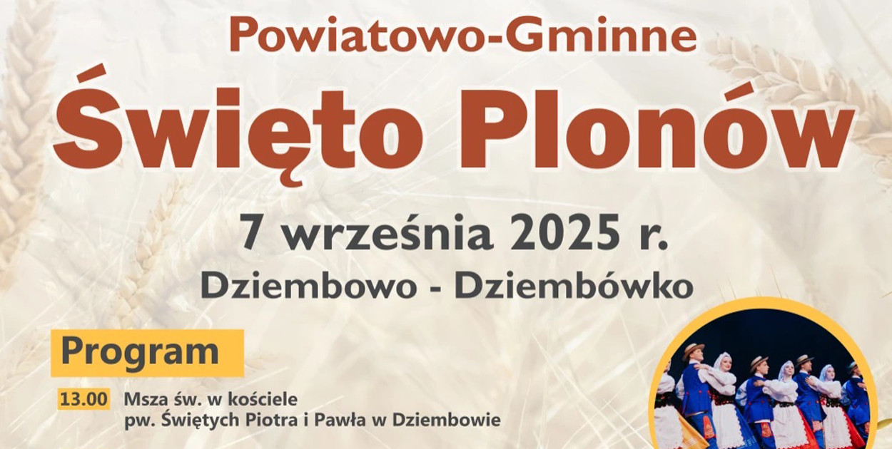 Uroczystości dożynkowe rozpoczną się o godzinie 13 mszą św. w kościele pw. Świętych Piotra i Pawła w Dziembowie. Następnie korowód dożynkowy przejdzie na boisko w Dziembówku, gdzie o godz. 15:00 rozpoczną się obrzędy dożynkowe z udziałem Zespołu Tańca Polskiego Wronki. Na scenie zaprezentuje się także Orkiestra im. Zdzisława Nawrota oraz zespół wokalny Sonata.