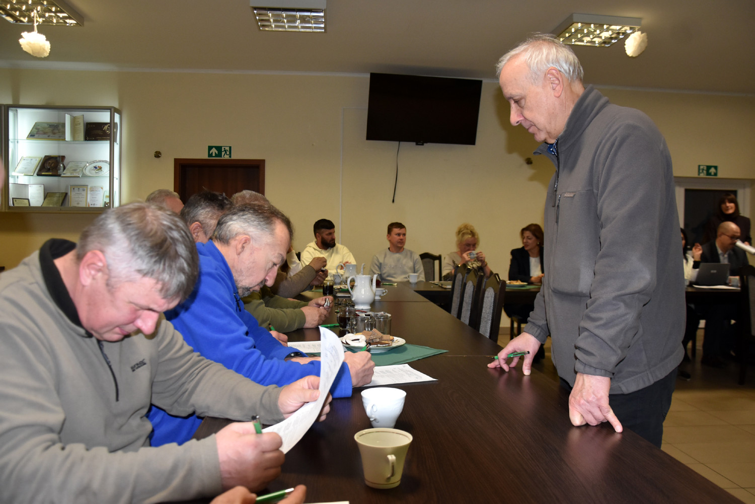 Uczestnicy spotkania, rolniczki i rolnicy z gminy Białośliwie, stanęli najpierw do konkursu „Bezpieczna praca to się opłaca”. W teście składającym się z 10 pytań należało wskazać jako prawidłową jedną z trzech odpowiedzi.