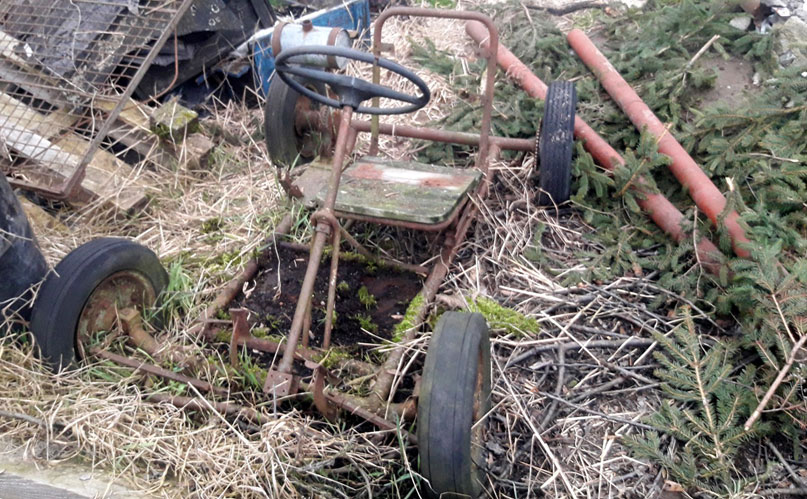 Gokart przez lata wrósł w ziemię na prywatnej posesji w Pile. Co istotne: jest to pojazd nie tylko używany w pilskiej Wyższej Oficerskiej Szkole Samochodowej, ale i tam zaprojektowany i zbudowany!