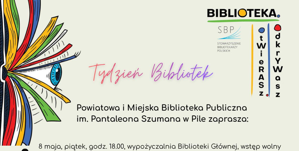 - Hasło tegorocznej edycji „Biblioteka. Otwierasz. Odkrywasz” zachęca do odkrywania bogactwa wiedzy i kultury dostępnej w placówkach. W naszej bibliotece każdy znajdzie coś dla siebie: spotkania autorskie, spektakl teatralny, grę terenową i możliwość bycia niecodziennym bibliotekarzem - mówi Joanna Wyrwa-Krzyżańska, dyrektor Powiatowej i Miejskiej Biblioteki Publicznej im. Pantaleona Szumana w Pile.