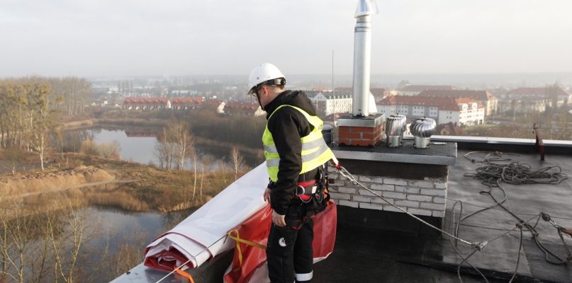 Prezydent wjechał także na dach wieżowca przy ulicy Kusocińskiego, aby wspólnie z alpinistami zamontować siatkę reklamową. Dodajmy iż Piotr Głowski pełnił funkcję kierowcy samochodu dostawczego i świetnie poradził sobie również w tej roli.