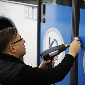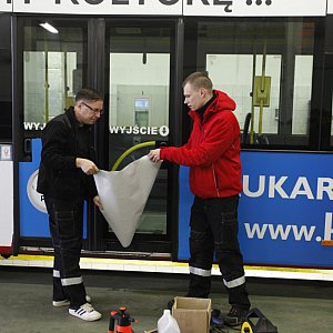 Po porannej kawie i krótkiej rozmowie prezydent Piły Piotr Głowski przystąpił do wykonywania wielu ciekawych, czasem trudnych i wymagających precyzji, a także odwagi zadań. Pierwsza część dnia pracy upłynęła pod znakiem zadań w terenie - i tak udało się dokończyć wyklejenie autobusu MZK oraz zamontować tablicę informacyjną dla Parafii Ewangelicko-Augsburskiej w Pile.
