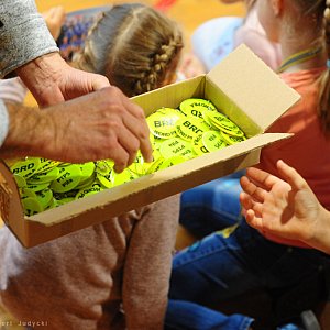 Tak jak poprzednio, WORD w spotkaniach z najmłodszymi dziećmi wspierają siatkarki Enea PTPS Piła. Dorota Wilk i Karolina Różycka pomagały rozdawać uczniom odblaskowe opaski oraz zawieszki na tornister. Dzieci mogły się też przekonać za pomocą "magicznej tuby", jakie znaczenie ma noszenie odblasków po zmierzchu oraz w warunkach ograniczonej przejrzystości powietrza, a także przypomniały sobie, jak bezpiecznie przechodzić przez jezdnię na przejściach dla pieszych.