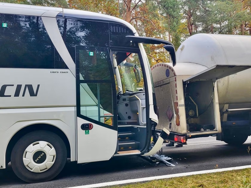 Kierowca autokaru z uczniami ze Szczecina nie zdążył wyhamować i najechał na tył cysterny z gazem.