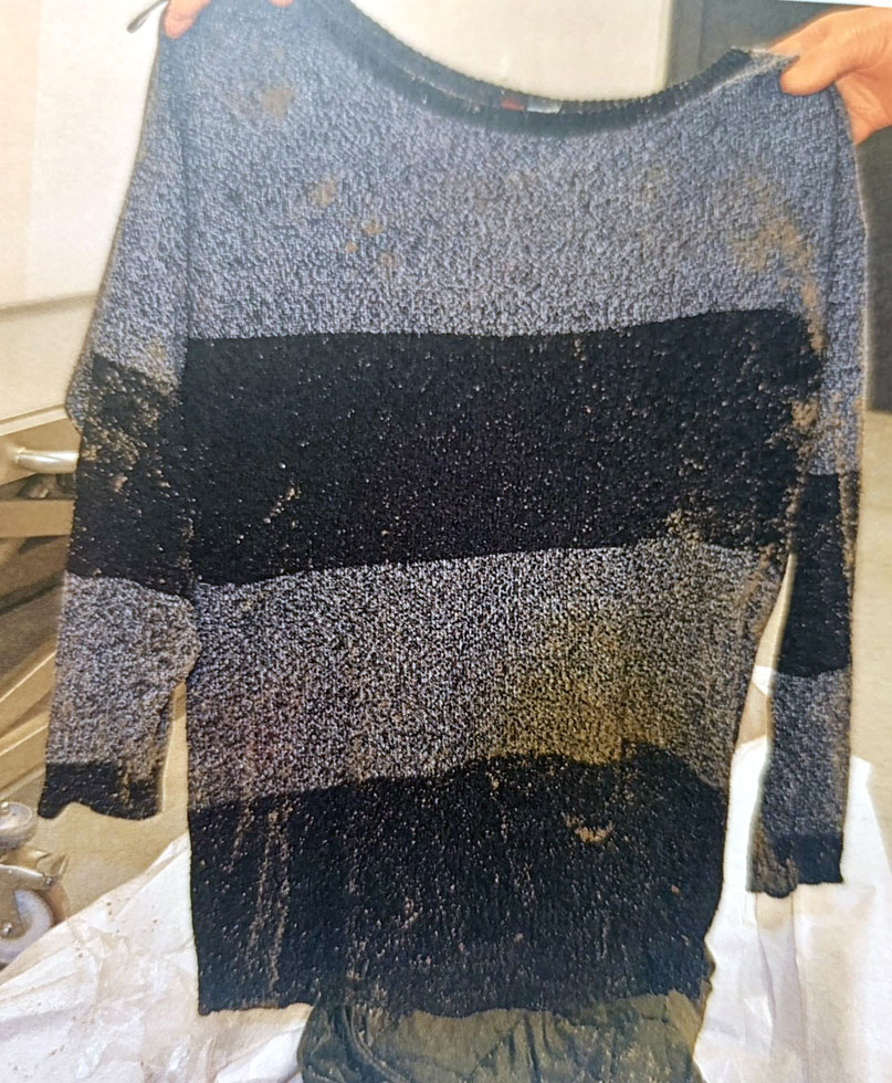 W momencie ujawnienia ubrana była w granatową puchową kurtkę, szaro-czarny sweter w paski oraz ciemne buty.