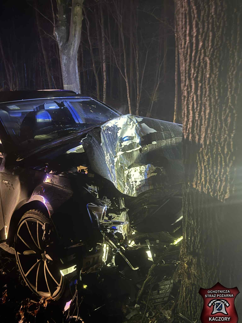 Kierujący samochodem osobowym uderzył w przydrożne drzewo.