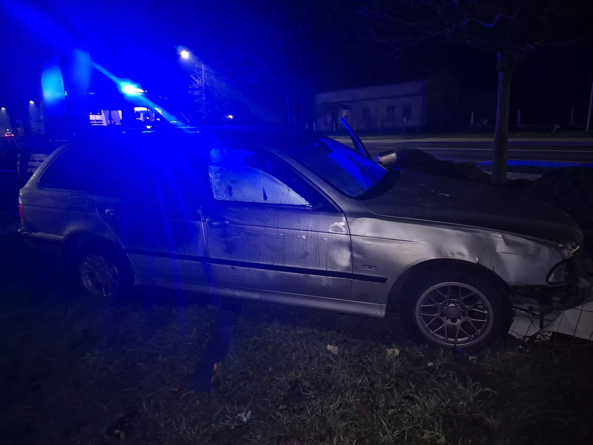 Policjanci na miejscu potwierdzili, że osobowe BMW wjechało na teren lokalnego punktu gastronomicznego, uszkadzając przy tym elementy ogrodzenia oraz przedmioty znajdujące się na posesji.