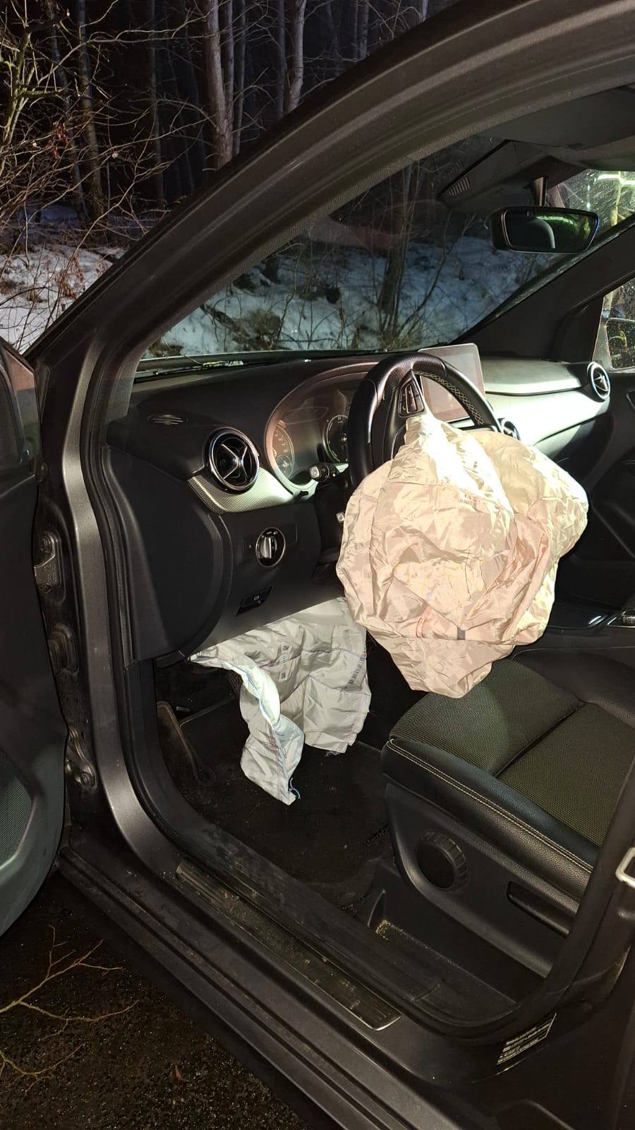 Uderzył w drzewo, aż wystrzeliły poduszki