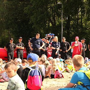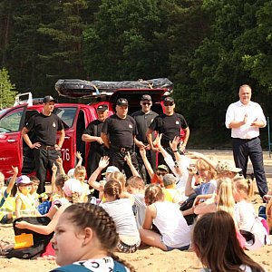 Szczególną uwagę poświęcono bezpieczeństwu nad wodą. Dzieci dowiedziały się m.in. co powinny ze sobą zabrać wybierając się nad wodę, gdzie wolno się kąpać, jak bezpiecznie się opalać, kiedy należy wyjść z wody, jak pomóc sobie samemu w sytuacji kryzysowej, na przykład, kiedy zachłyśniemy się wodą i o wielu innych ważnych, elementarnych zasadach bezpieczeństwa nad wodą. Strażacy oraz ratownicy WOPR przygotowali pokaz działań ratowniczych na wodzie. Akcja ratownicza osoby tonącej wzbudziła bardzo duże zainteresowanie wśród dzieci. Kolejnym punktem spotkania był pokaz sprzętu ratowniczego. Chętni mogli ubrać sprzęt nurkowy oraz wsiąść do strażackiego samochodu oraz strażackiej łodzi ratowniczej. Szczególne zainteresowanie wzbudził nurek w pełnym uzbrojeniu, który zanurzył się w okolicy plaży. Prezentacja nurkowania możliwa była dzięki Specjalistycznej Grupy Ratownictwa Wodno-Nurkowego z pilskiej straży pożarnej.