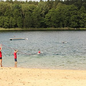 Po zakończonej części edukacyjnej dzieci zostały zaproszone na brzeg jeziora by obserwować gościa specjalnego, który wynurzył się z wody. Był to mieszkaniec jeziora Płotki... dinozaur, który wzbudził ogromne emocje.