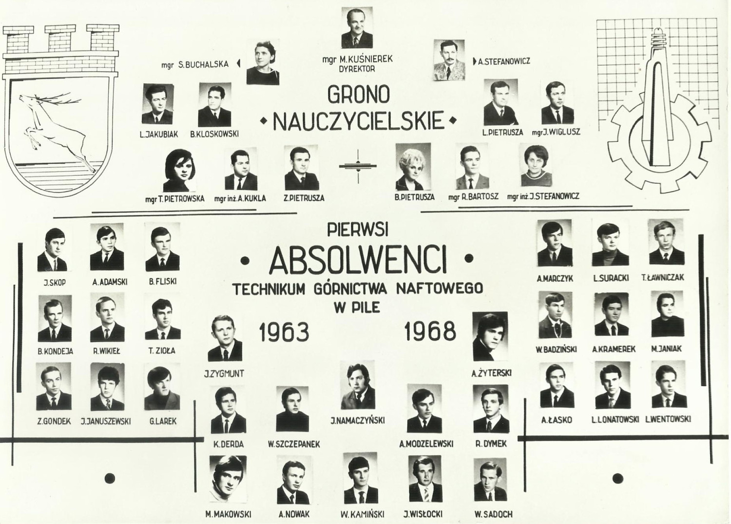 Tablo pierwszych absolwentów Technikum Górnictwa Naftowego w Pile (1963-1968)