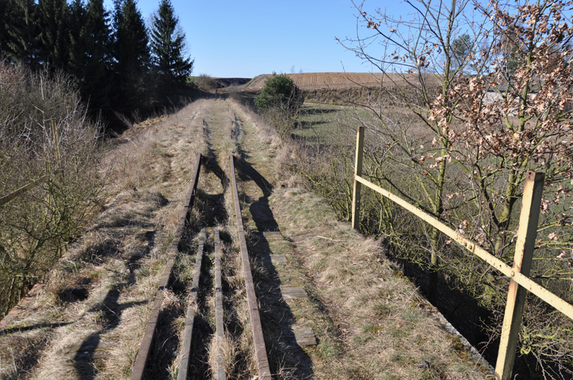 Ale uszczerbki to nie wszystko. W lasku między Falmierowem a Polinowem „uzębienie” co prawda jest całe, ale za to z mnóstwem „plomb” w postaci krzaków, a nawet całych drzew, które wyrosły na nieużytkowanym od lat torowisku.