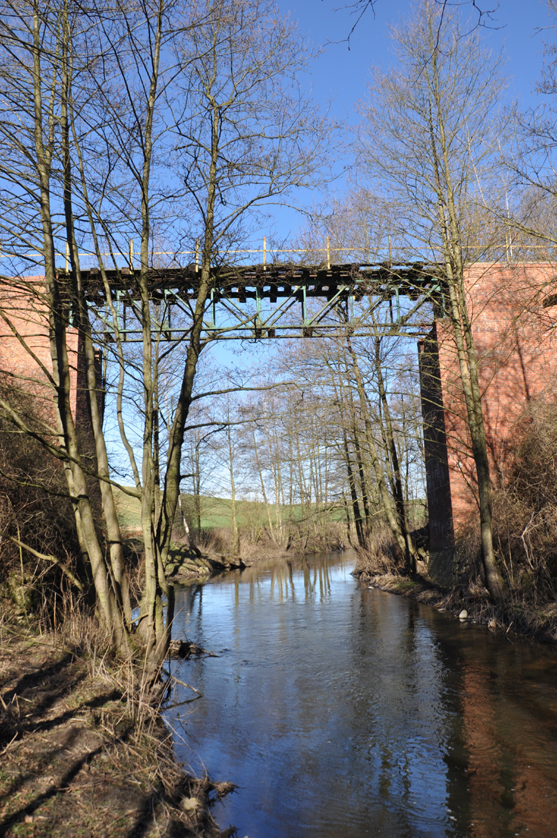 Po kilku minutach objawia się przed nami cel wyprawy: „czerwony most”, rozpięty kilkanaście metrów nad lustrem Łobżonki. Od razu należy ostrzec: lepiej nie ryzykować przejścia na drugą stronę - balustrada jest niekompletna i chybotliwa, a odeskowanie, które zachowało się tylko z jednej strony toru, mocno spróchniałe. Zresztą wraz ze wschodnim krańcem mostu kończą się już szyny.