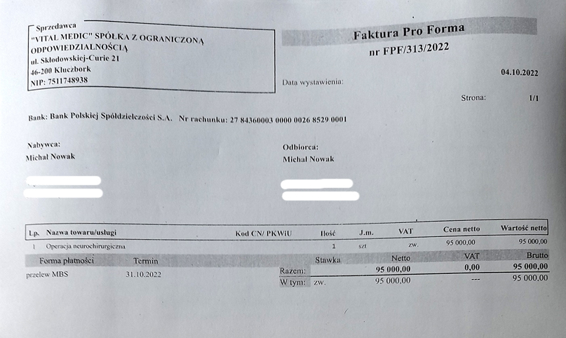 W związku z tym Michała pilnie czeka kolejna - siedemnasta już- operacja neurochirurgiczna. Jej koszt to 95 tysięcy złotych. Wystawiona 4 października faktura ma termin płatności do końca października br.