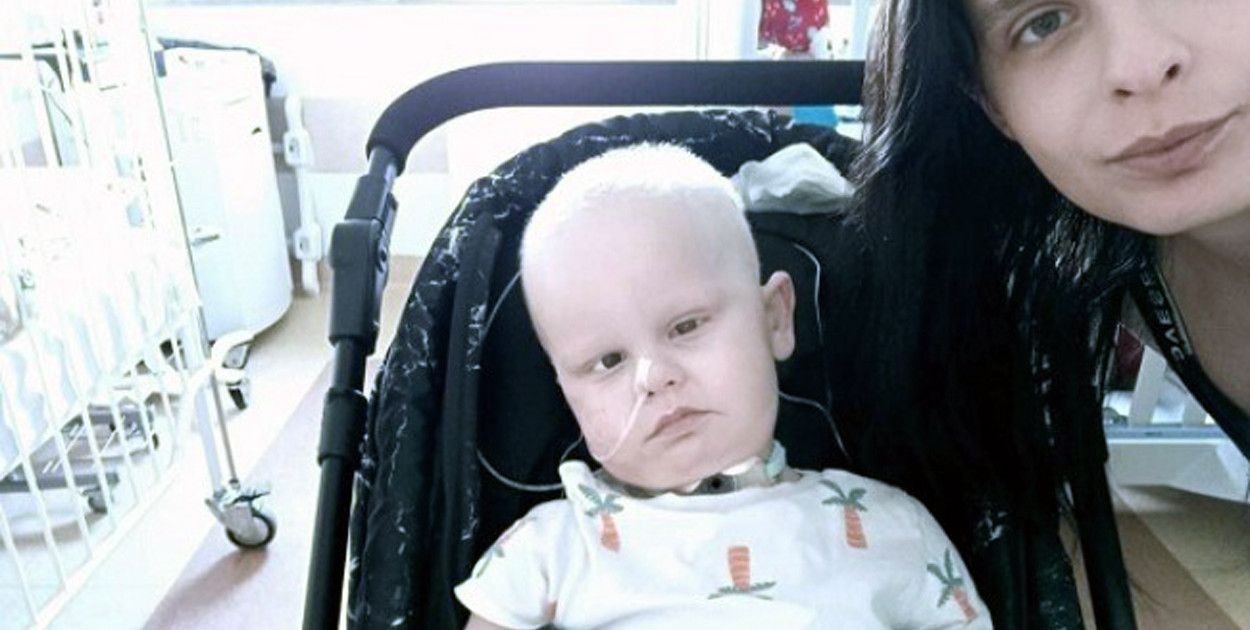 Chłopiec ma założoną tracheostomię, jest karmiony tylko i wyłącznie do sondy, nie ma odruchu połykania, stwierdzono u niego także lekki niedowład prawej strony ciała.