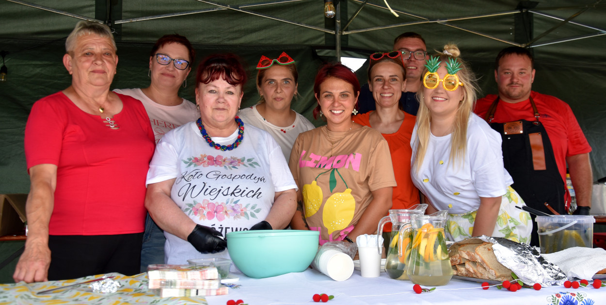 W menu na stoisku miejscowego Koła Gospodyń Wiejskich jest i „coś na ząb” (kiełbasa z grilla, pajda chleba ze smalcem i ogórkiem, pyra z gzikiem, frytki, popcorn i letnia sałatka z fetą), i „coś na osłodę” (chrupiące churrosy, beza i tartaletka z owocami, ciasto/tarta, babeczka z jagodami), i wreszcie „coś dla spragnionych” (kawa mrożona z bitą śmietaną, koktajl owocowy, lemoniada).