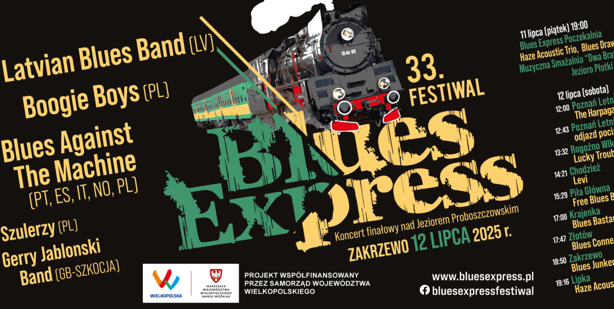 W koncercie głównym XXXIII Blues Expressu nad jeziorem Proboszczowskim wystąpią: Szulerzy, Gerry Jablonski Band, Latvian Blues Band, Boogie Boys oraz międzynarodowa formacja Blues Against The Machine.