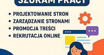 Promuj ogłoszeniePoszukuję pracy lub zleceń zdalnych związanych z projektowaniem i zarządzaniem stronami internetowymi, rekrutacją online oraz promocją treści w internecie. Mam doświadczenie ... czytaj więcej
