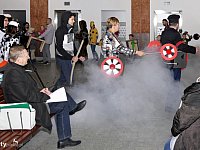 U progu zimy pilanie przyodziali Staszica w szalik i czapkę z pomponem.