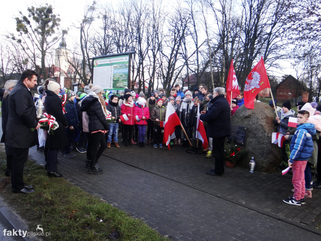 Delegacje uczniów Szkoły Podstawowej im. Wiktora Kaji, władz samorządowych gminy Białośliwie oraz Gminnego Ośrodka Kultury złożyły kwiaty i zapaliły znicze pod tablicą upamiętniającą miejscowych Powstańców Wielkopolskich.